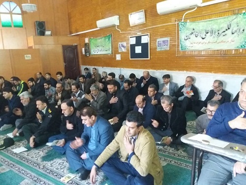 به گزارش روابط عمومی اداره کل منابع طبیعی و آبخیزداری خوزستان : مراسم زیارت عاشورا و سوگواری سردار شهید حاج قاسم سلیمانی با حضور مدیران و همکاران در محل نمازخانه اداره کل منابع طبیعی خوزستان برگزار شد . در این مراسم حجت الااسلام سید حسین موسویlمام جماعت این اداره کل سخنانی رادر همین خصوص ایراد فرمودند.در پایان مراسم با مداحی ذاکر اهل بیت حاج مسکینی به پایان رسید.